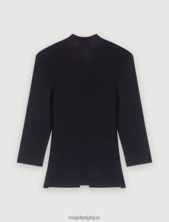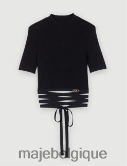 Maje femmes top côtelé avec détail ajouré 288PF0344 vêtements noir