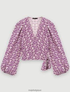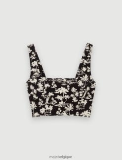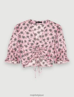 Maje femmes top court à sequins hibiscus 288PF0161 vêtements imprimé hibiscus rose
