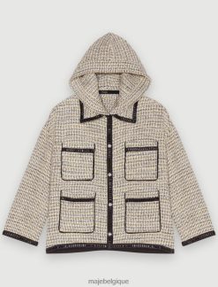 Maje femmes manteau à capuche en tweed 288PF0360 vêtements jaune