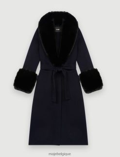 Maje femmes manteau en fausse fourrure double face 288PF037 vêtements marine