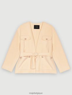 Maje femmes manteau en laine avec ceinture 288PF0363 vêtements beige