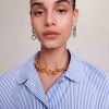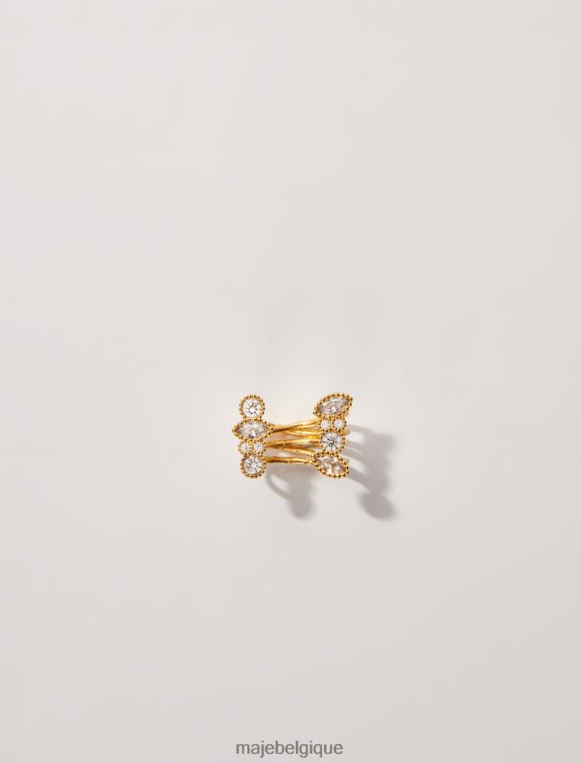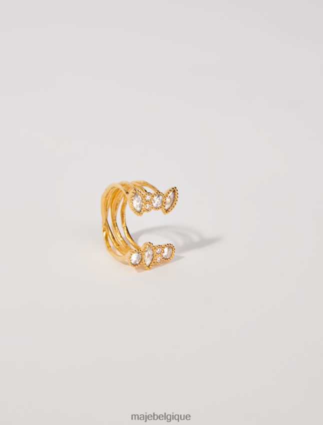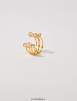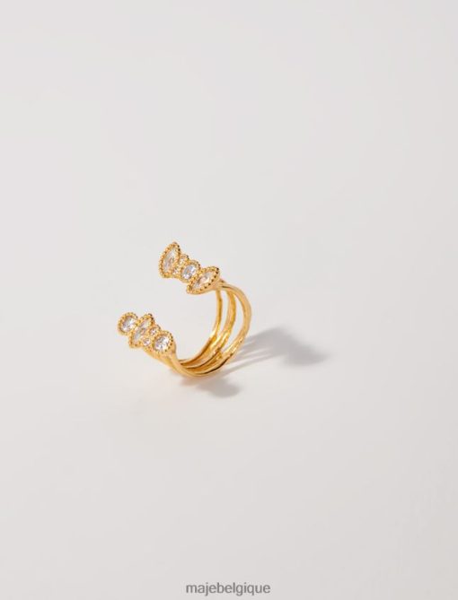 cette saison, maje crée des bijoux délicats et intemporels alliant sophistication et féminité. inspirés de l’opulence dorée des années 80, ces magnifiques accessoires élégants sont parfaits pour toutes les occasions et mettront en valeur n’importe quelle tenue. Cette bague ouverte en laiton recyclé plaqué or est le moyen idéal pour ajouter une touche d’éclat à toute occasion. ses lignes audacieuses et sophistiquées créent des courbes délicates, tandis que les strass argentés attirent la lumière ainsi que le regard de tous.