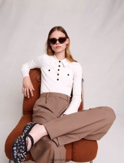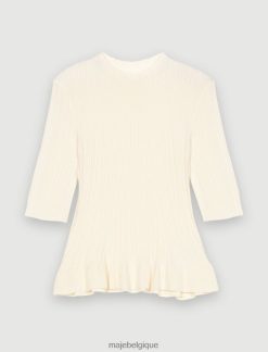 Maje femmes haut en maille à volants 288PF0312 vêtements écru