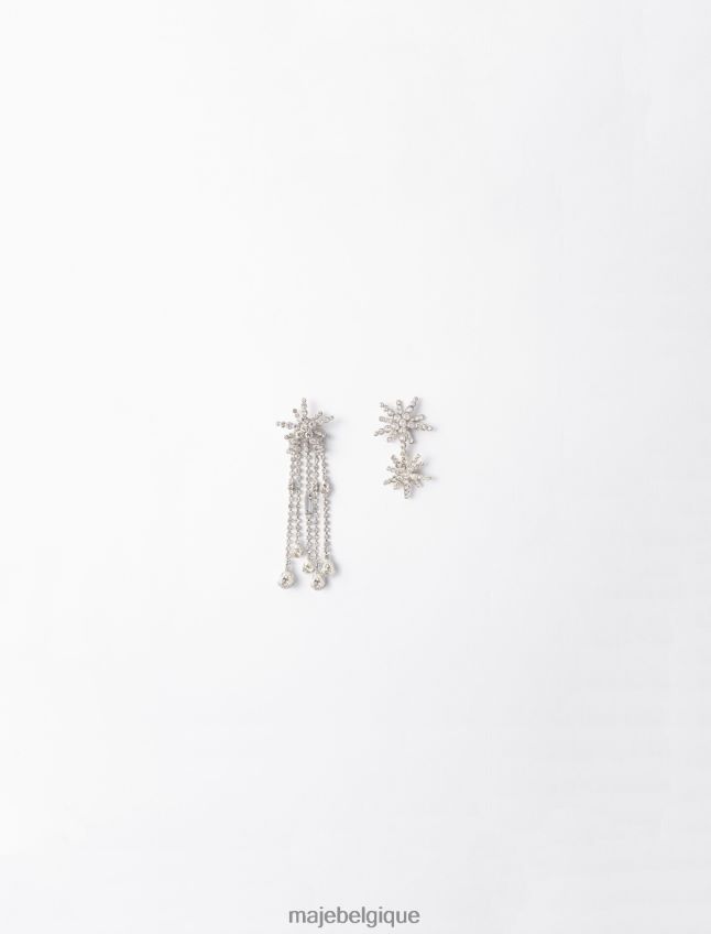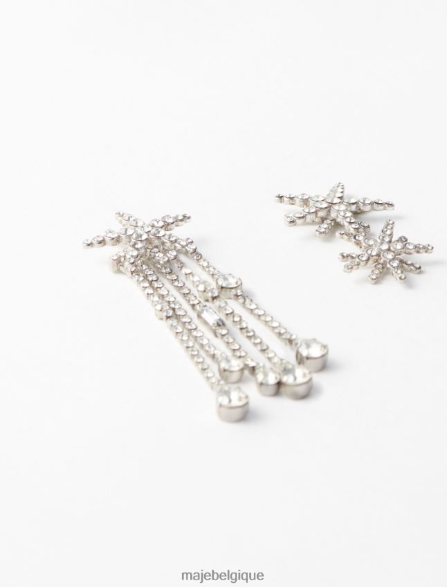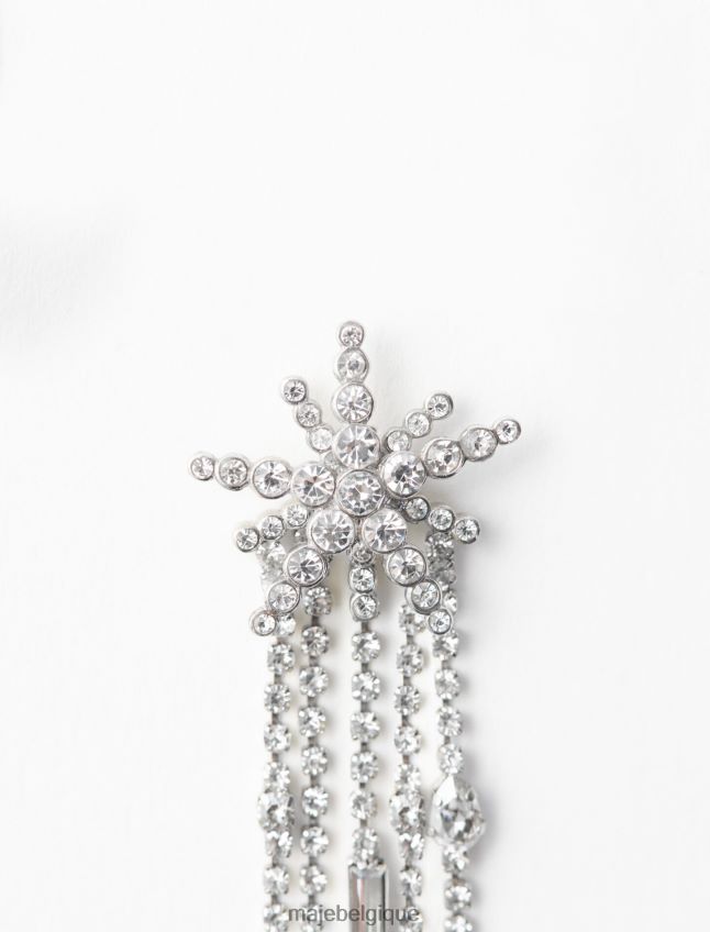 boucles d’oreilles pendantes avec cristaux en motif stellaire. un motif signature de la collection w19 qui nous emmène dans un univers lumineux et féminin.