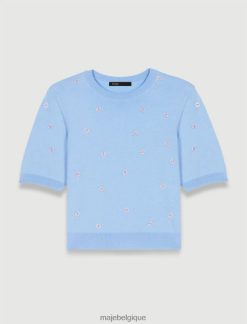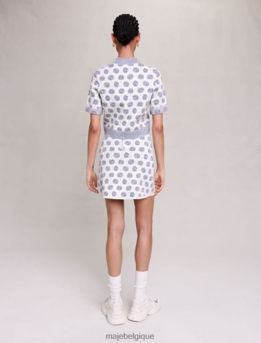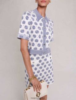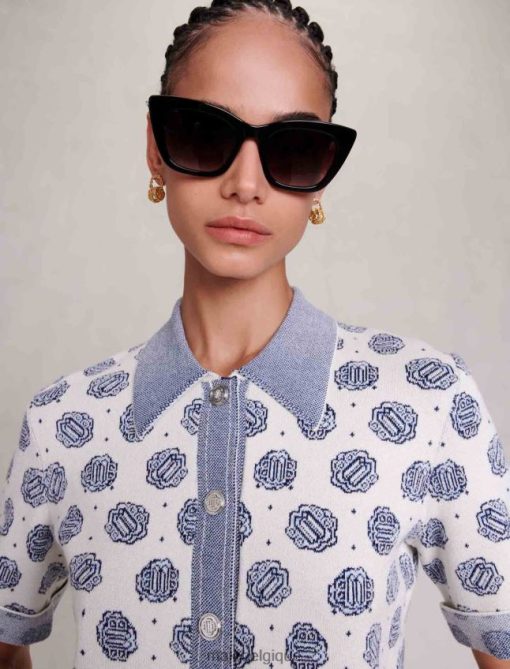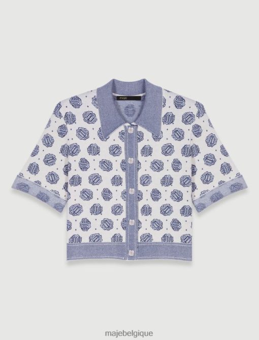 Maje femmes cardigan avec maille monogramme 288PF075 vêtements monogramme trèfle écru/bleu