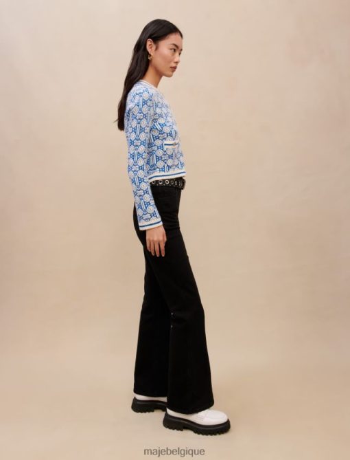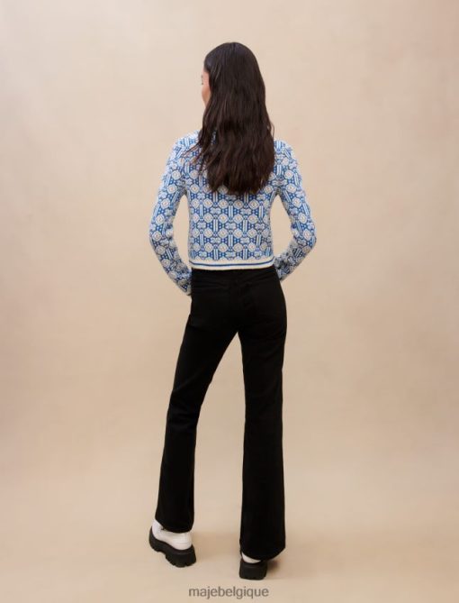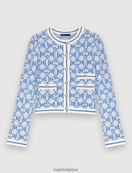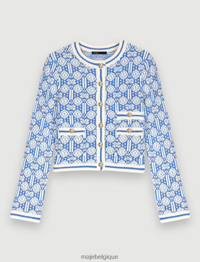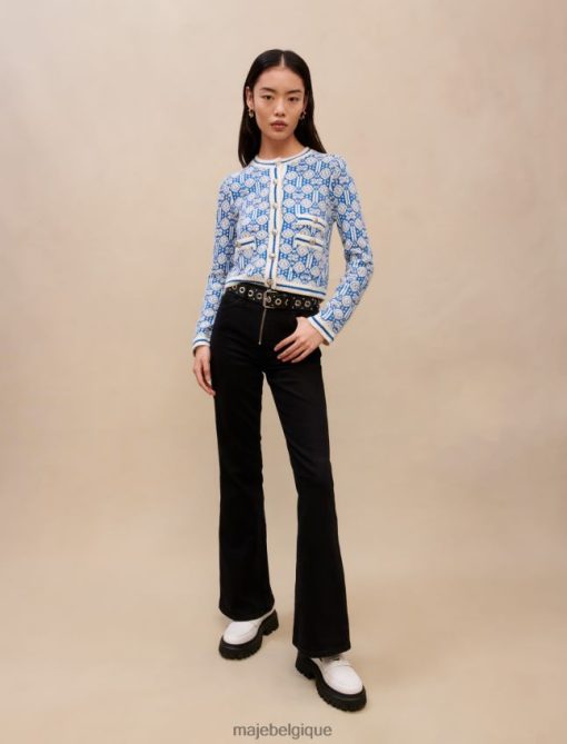 Maje femmes cardigan avec maille monogramme 288PF075 vêtements monogramme trèfle écru/bleu