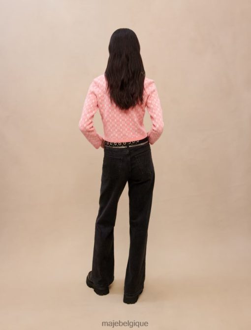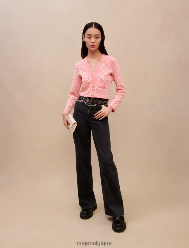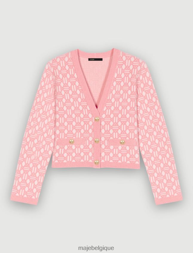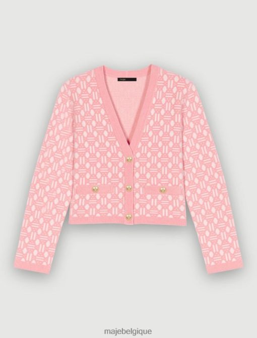 ce cardigan court en jacquard rose à imprimé trèfle maje est la pièce colorée qui égayera votre journée. il arbore une coupe oversize, un imprimé trèfle rose maje et des boutons en nacre. ce cardigan ira très bien avec le pantalon.ref: mfpca00335