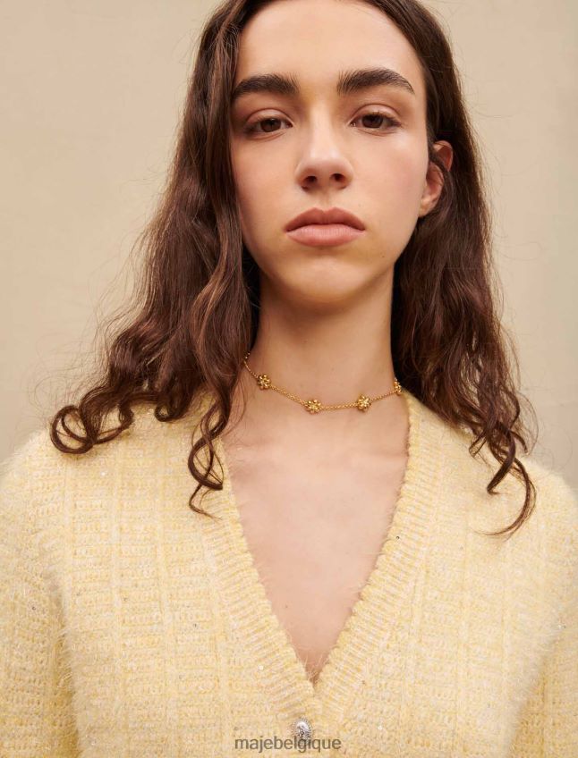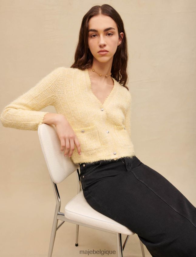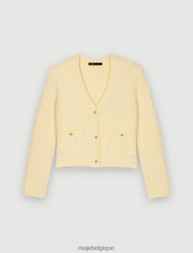 Maje femmes cardigan en maille effet tweed 288PF0290 vêtements jaune