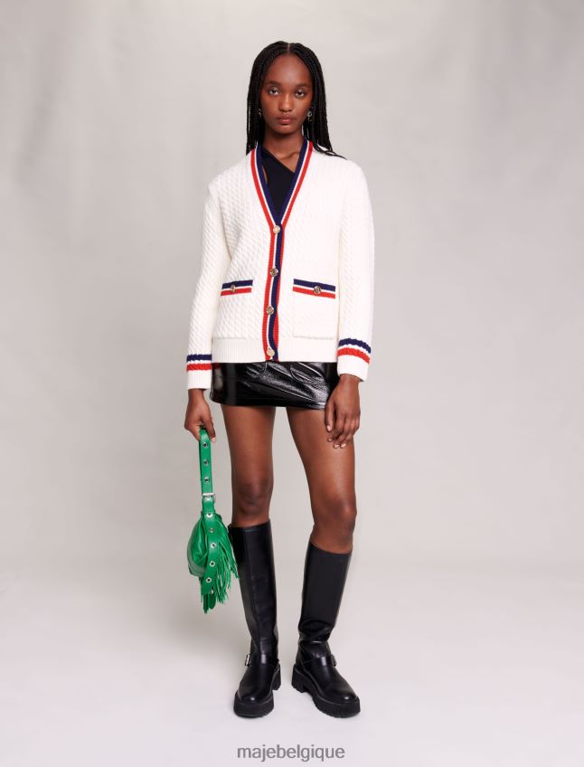 pour cette nouvelle collection, le studio s’inspire de l’élégance british des années rétro pour revisiter les classiques du vestiaire féminin. Confectionné en maille torsadée, ce cardigan long oversize joue avec les lignes et les volumes, avec des rayures bleues et rouges contrastées. il présente des manches longues, des poignets et une taille côtelés, deux poches plaquées, une encolure en V et une fermeture boutonnée en forme de trèfle. suprêmement chic et décontracté, il crée une silhouette ajustée et structurée.
