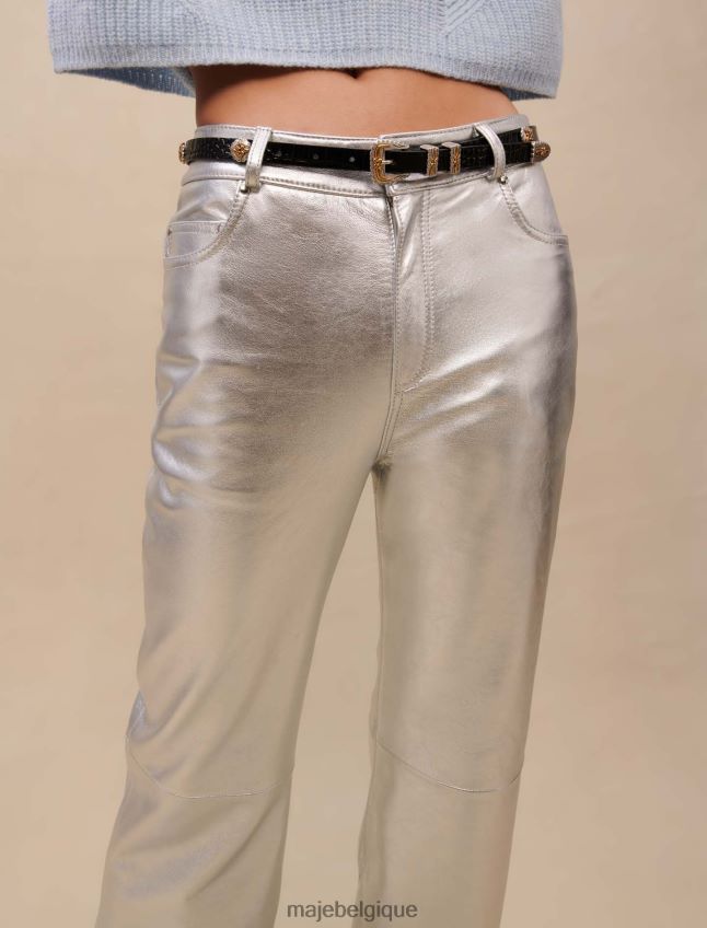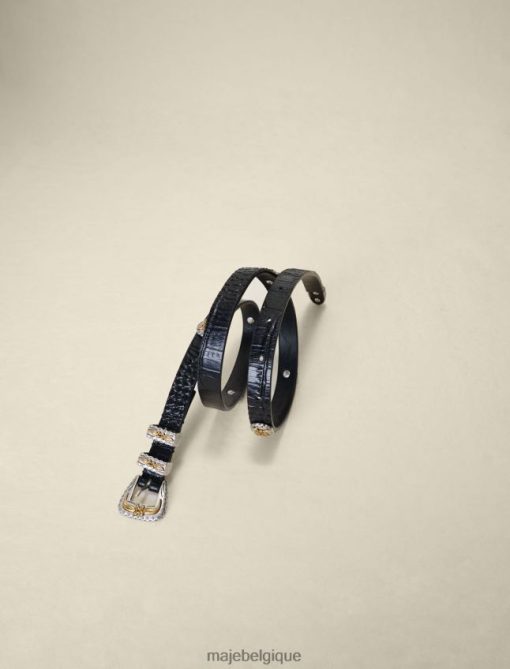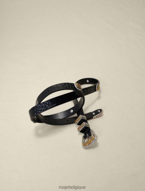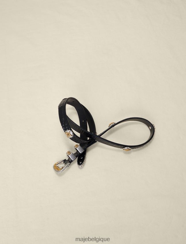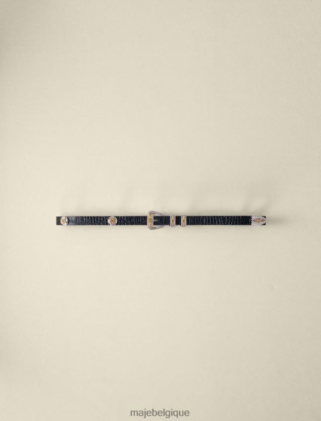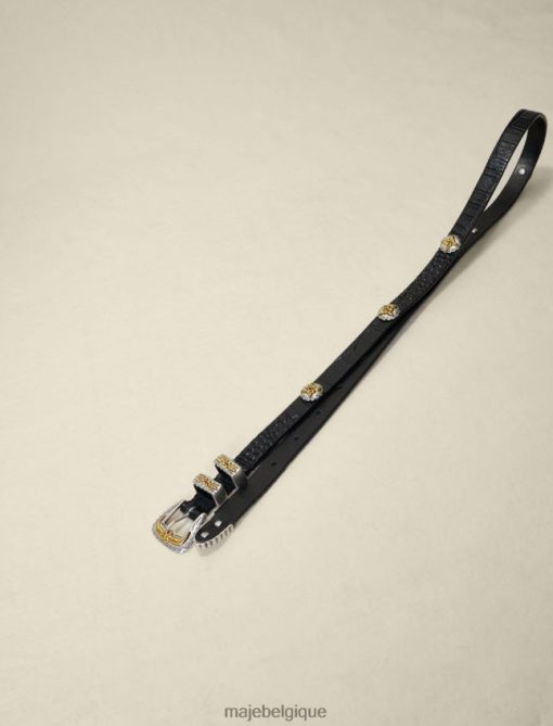 cette ceinture en cuir ornée de motifs de trèfles et d’une boucle métallique élaborée de style western définit élégamment la silhouette. il peut être enfilé sur une veste pour un look plus ajusté.