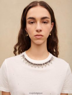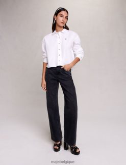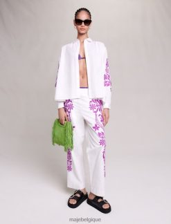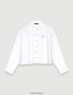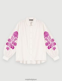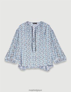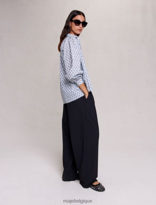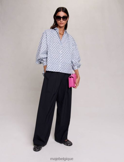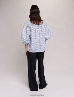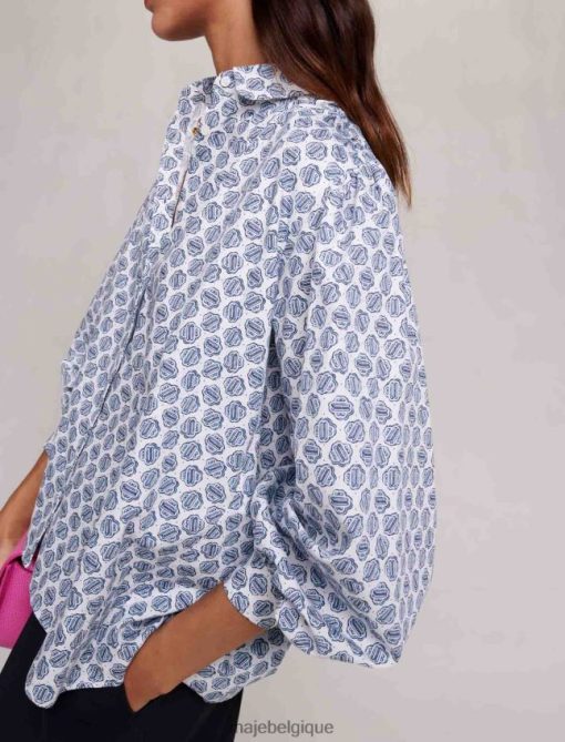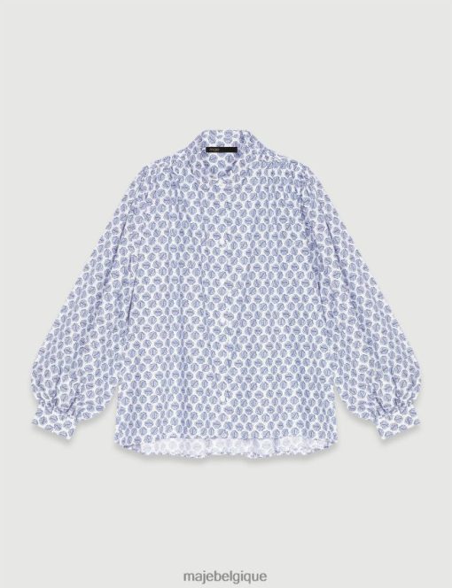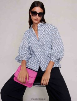 Maje femmes chemise à monogramme imprimé 288PF089 vêtements monogramme trèfle écru/bleu