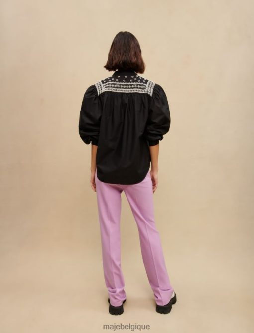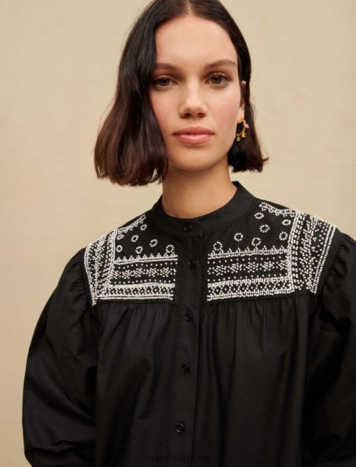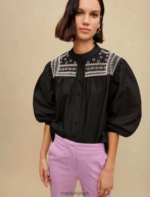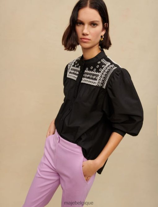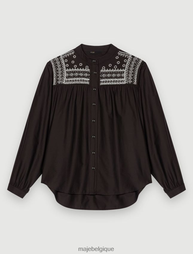cette chemise à manches longues et boutonnée présente des fronces sur la poitrine et des broderies contrastées sur les épaules.
