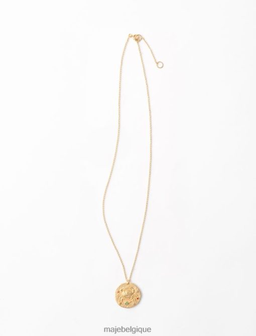 collier avec médaillon du zodiaque, incrusté de cristaux étincelants avec finition martelée et liseré rosé. réalisée en trois dimensions selon un savoir-faire unique, la pièce est gravée au dos d’un m de style art déco, l’emblème de maje. une pièce avec un esprit naturel et authentique durable.
