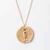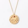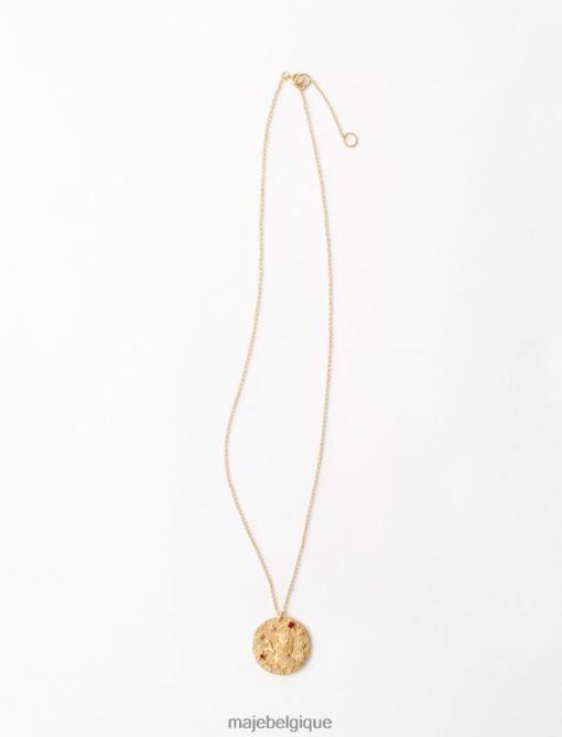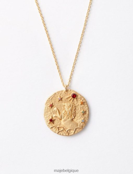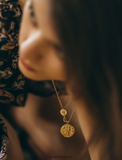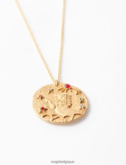 collier avec médaillon du zodiaque, incrusté de cristaux étincelants avec finition martelée et liseré rosé. réalisée en trois dimensions selon un savoir-faire unique, la pièce est gravée au dos d’un m de style art déco, l’emblème de maje. une pièce avec un esprit naturel et authentique durable.