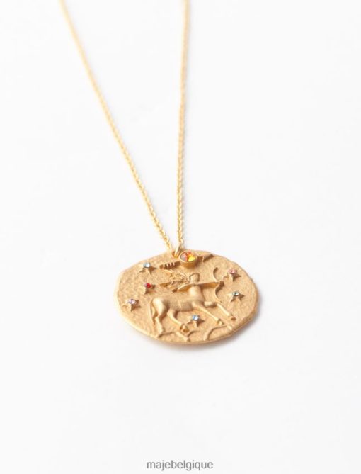 collier avec médaillon du zodiaque, incrusté de cristaux étincelants avec finition martelée et liseré rosé. réalisée en trois dimensions selon un savoir-faire unique, la pièce est gravée au dos d’un m de style art déco, l’emblème de maje. une pièce avec un esprit naturel et authentique durable.