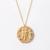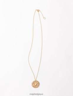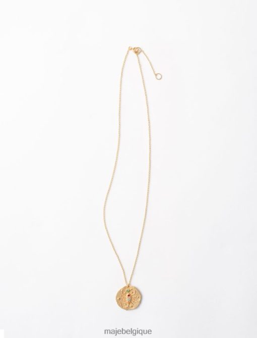 collier avec médaillon du zodiaque, incrusté de cristaux étincelants avec finition martelée et liseré rosé. réalisée en trois dimensions selon un savoir-faire unique, la pièce est gravée au dos d’un m de style art déco, l’emblème de maje. une pièce avec un esprit naturel et authentique durable.
