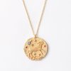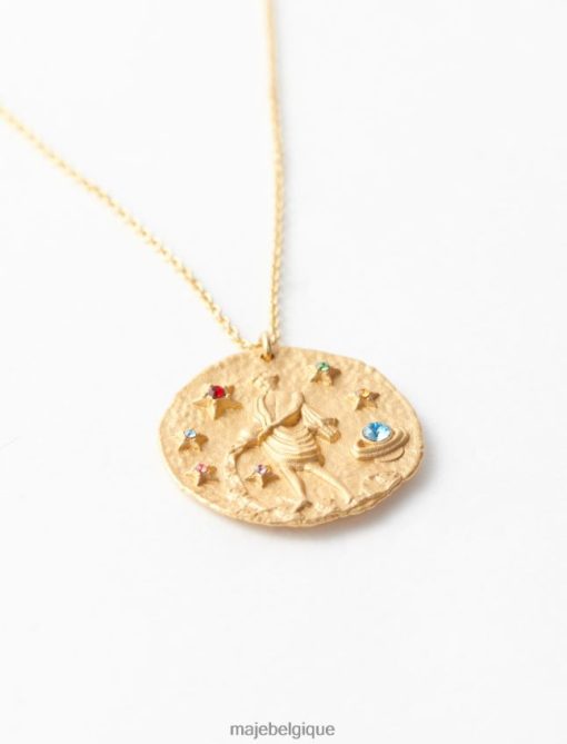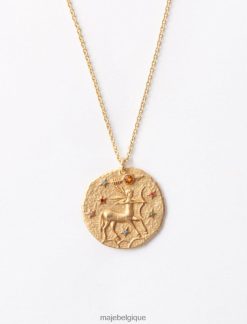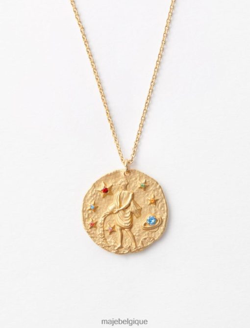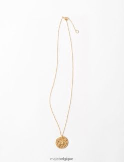 collier avec médaillon du zodiaque, incrusté de cristaux étincelants avec finition martelée et liseré rosé. réalisée en trois dimensions selon un savoir-faire unique, la pièce est gravée au dos d’un m de style art déco, l’emblème de maje. une pièce avec un esprit naturel et authentique durable.