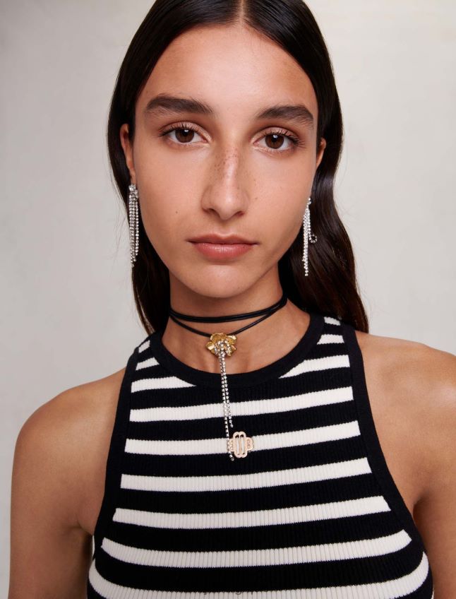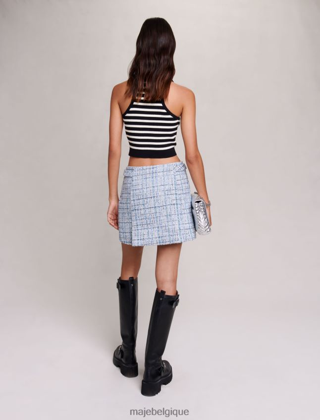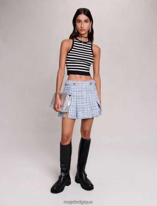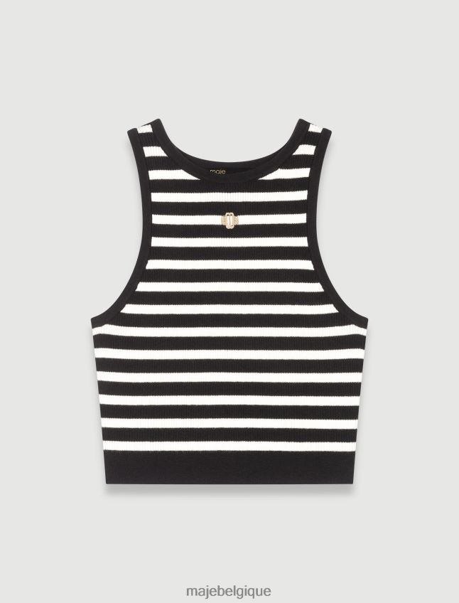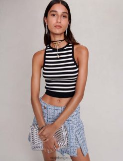 Cette saison, maje s’inspire de l’univers urbain et revisite avec audace les pièces intemporelles du vestiaire pour revisiter vos tenues du quotidien. Il y a un jeu de rayures sur ce haut court en tricot côtelé pour plus de confort et d’élégance. il est sans manches et présente un col rond, un dos nageur et une bordure contrastée. et qu’est-ce qui le rend si chic il comporte un trèfle doré signature sur le devant pour donner un vrai style à votre silhouette. C’est un modèle polyvalent, alors associez-le à une jupe texturée, un sac métallique, des bottes hautes et des bijoux pour un look résolument décontracté.