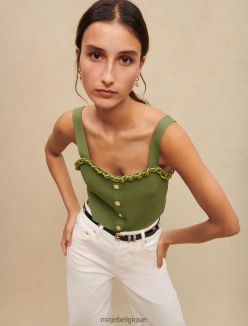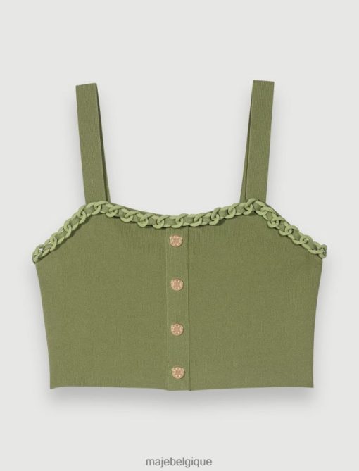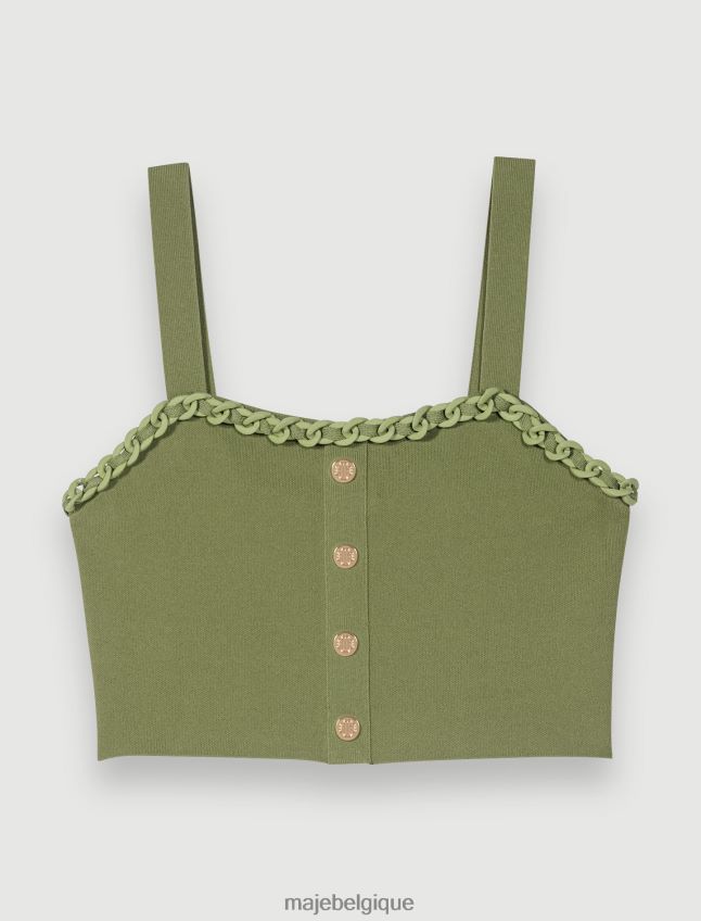 ce crop top orné de chaînes entrelacées en caoutchouc mat présente des boutons élaborés et peut être enfilé sous un blazer ou la veste assortie.