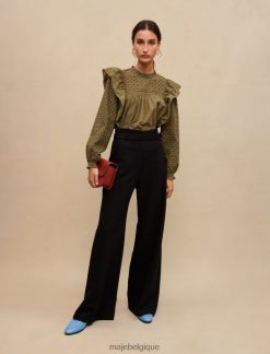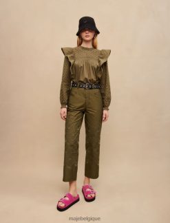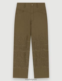 Maje femmes pantalon en coton brodé 288PF0286 vêtements kaki