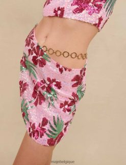 Maje femmes jupe courte 288PF0166 vêtements imprimé hibiscus rose