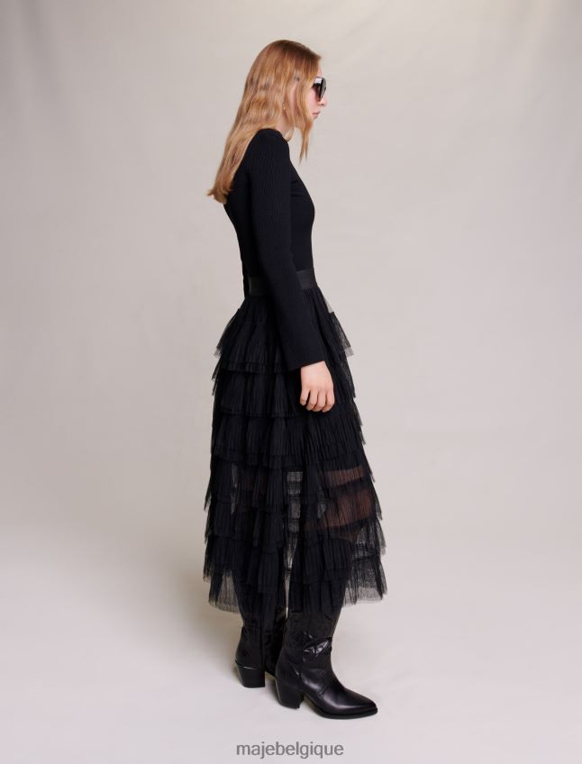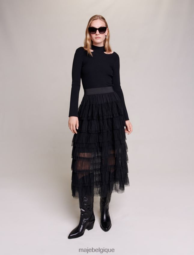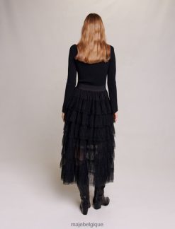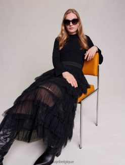Maje femmes jupe mi-longue en tulle 288PF0103 vêtements noir