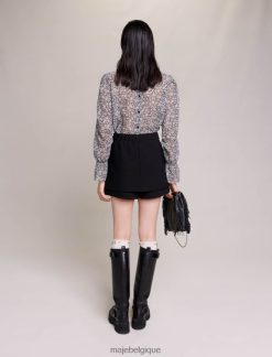 Maje femmes jupe-short superposée en crêpe 288PF0124 vêtements noir