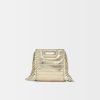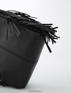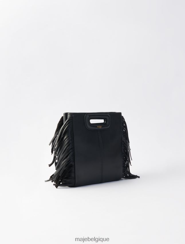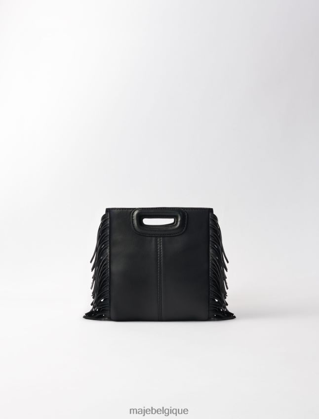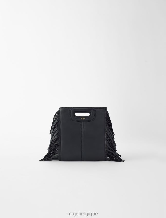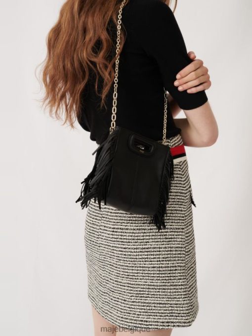 Le sac m iconique de Maje dans une version mini en cuir lisse. franges, une anse gainée, surpiqûre centrale, logo doré embossé, signature gravée sur les mousquetons. fermeture par languette magnétique. portez-le à l’épaule ou à la main grâce à la chaîne courte ou portez-le en bandoulière grâce à la bandoulière en cuir réglable.