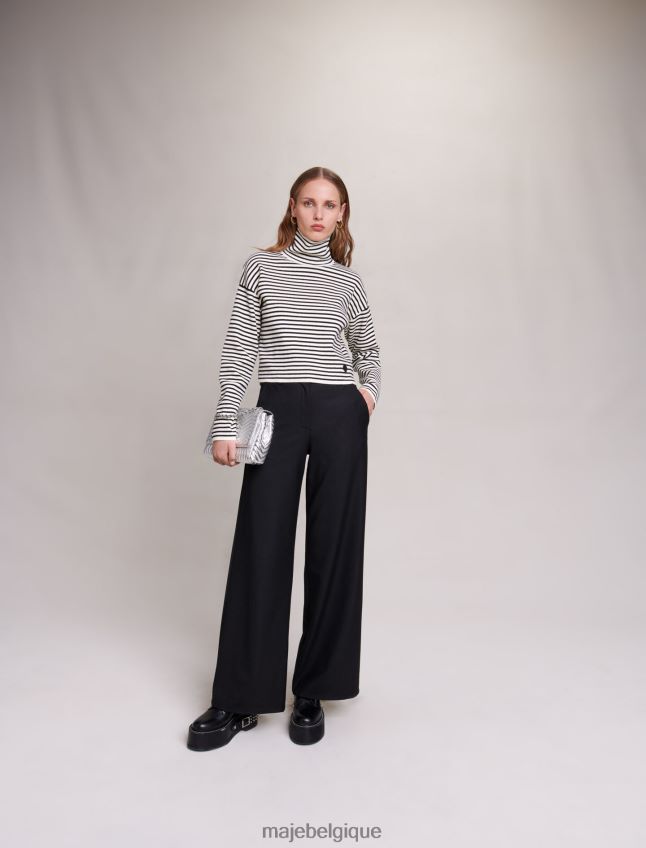 inspirée de l’univers urbain, maje réinvente cette saison les pièces intemporelles du vestiaire féminin avec une touche d’audace. Idéal en toutes occasions, ce pantalon évasé allie confort et élégance pour donner un nouveau twist à vos tenues. ils ont une fermeture zippée en crochet, deux poches avant et deux poches passepoilées au dos. Légèrement évasé aux chevilles, glissez une ceinture dans les passants pour une silhouette ajustée pleine de style. Mélangez-les avec un haut rayé, des bottes à plateforme et des bijoux pour un look à la fois chic et décontracté.