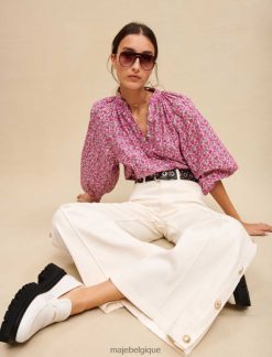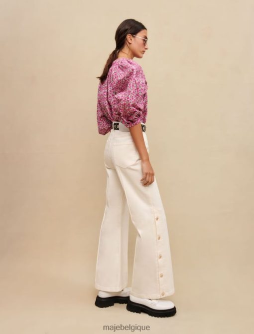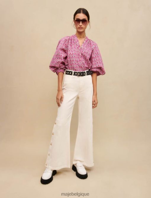 Maje femmes pantalon large avec côtés boutonnés 288PF0319 vêtements écru