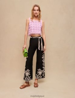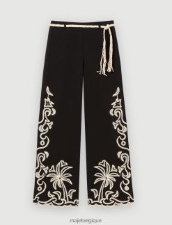 Maje femmes pantalon à broderies de palmiers 288PF0245 vêtements noir