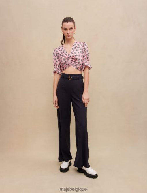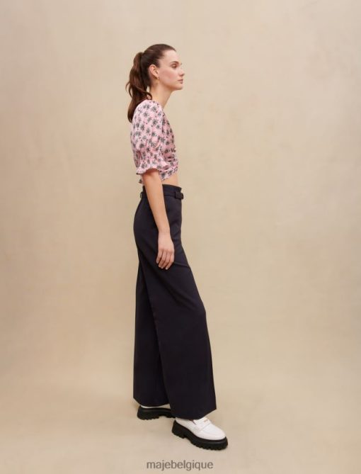 Maje femmes pantalon large taille haute 288PF0118 vêtements marine