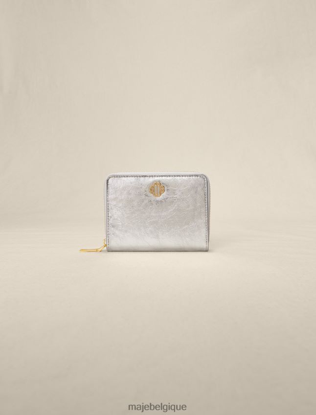 Portefeuille en cuir de veau métallisé. il pourra contenir de la monnaie dans sa poche plaquée zippée, des cartes dans les 3 compartiments, ainsi qu’un passeport ou d’autres documents. il est agrémenté d’un logo double m doré.