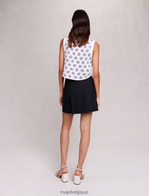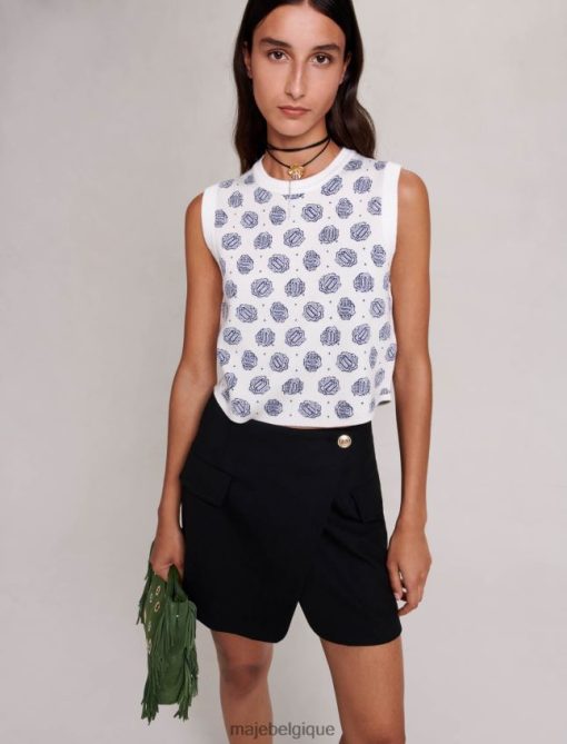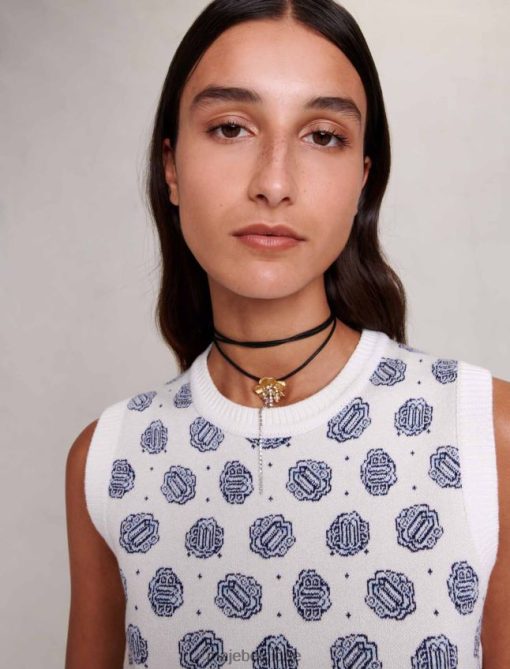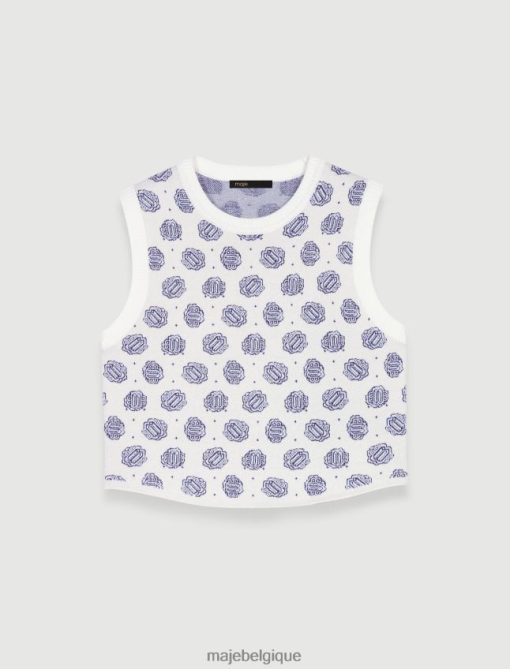 Maje femmes pull court à imprimé monogrammé 288PF099 vêtements monogramme trèfle écru/bleu
