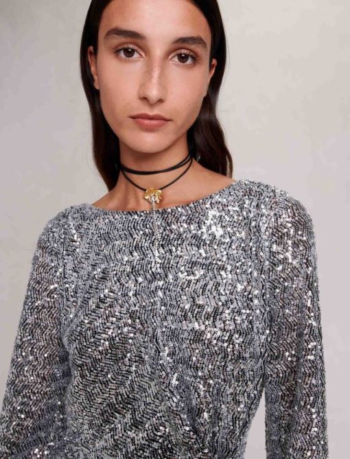 Maje femmes robe à paillettes 288PF024 vêtements argent