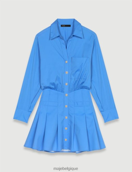 laissez-vous emporter dans un univers romantique aux subtiles inspirations british. la fille maje s’exprime avec un air poétique et crée des looks romantiques et preppy en mixant des pièces iconiques. Le bleu scolaire, couleur phare de la saison, est à l’honneur sur cette robe chemise courte en coton, créant une silhouette structurée. Doté d’une taille élastiquée au dos et de manches longues avec poignets boutonnés, il possède une poche poitrine plaquée et de fausses poches passepoilées. sa jupe plissée et évasée est ornée de boutons-pression en forme de trèfle doré et tombe parfaitement. Cette pièce s’accessoirise facilement avec des santiags, un sac effet métallisé et des bijoux.