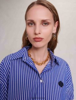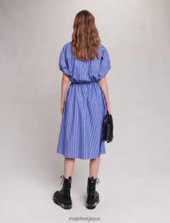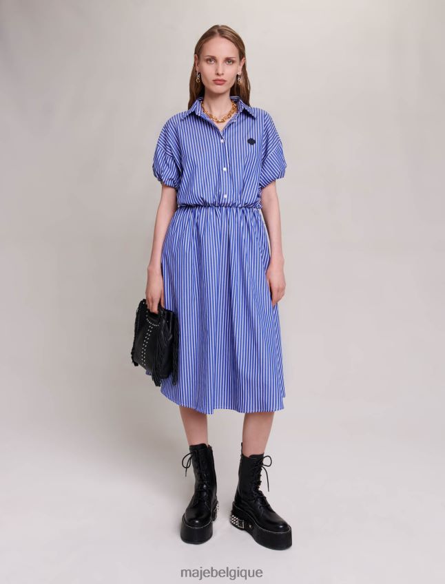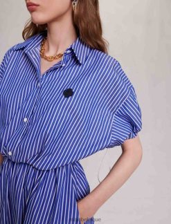 Maje femmes robe chemise longue à rayures 288PF041 vêtements bleue