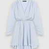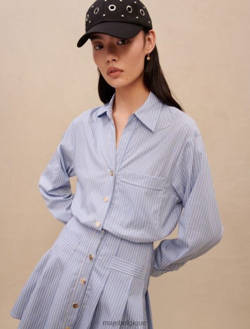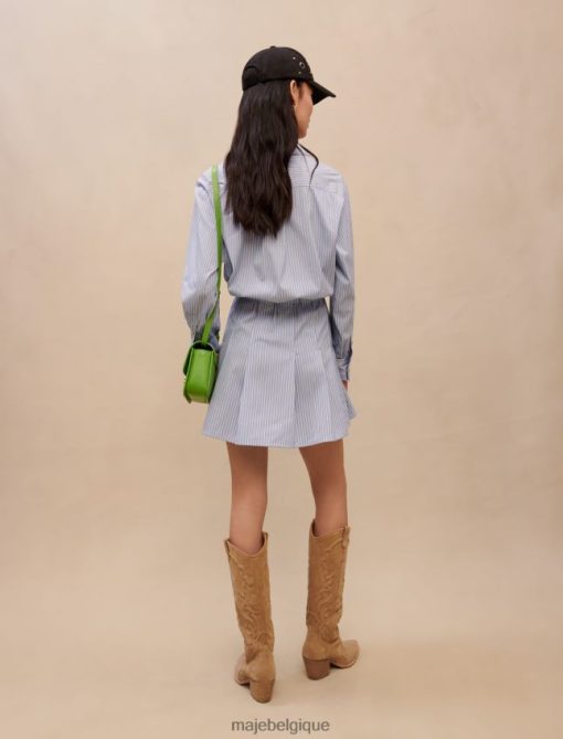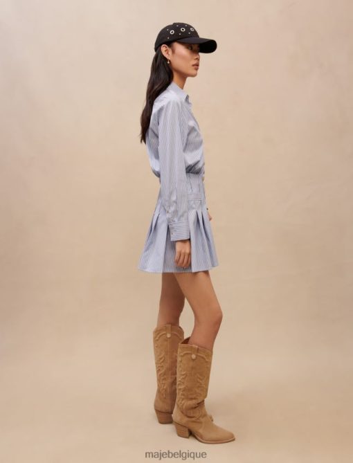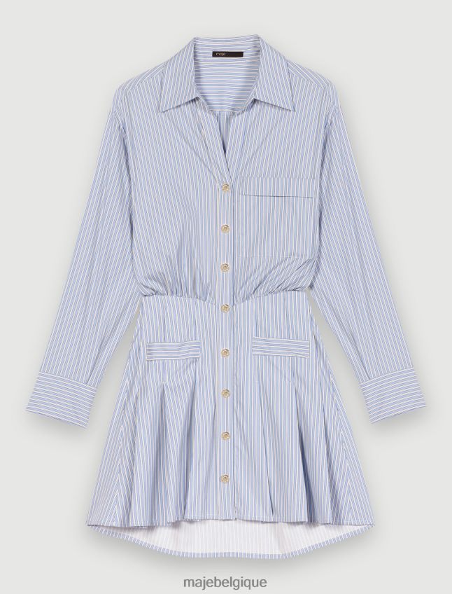 cette robe deviendra rapidement votre robe chemise préférée. très élégante avec ses rayures bleues et blanches, elle est cintrée à la taille et arbore des boutons argentés. parfait pour une journée au bureau.