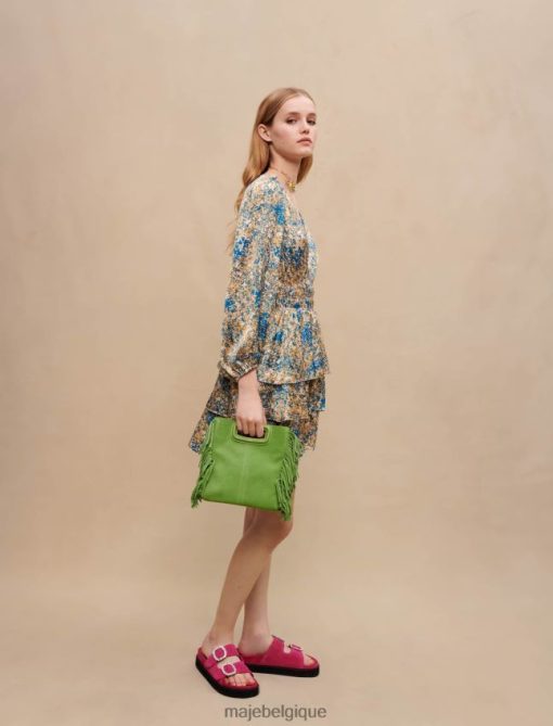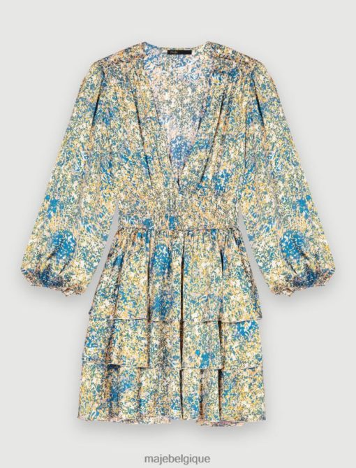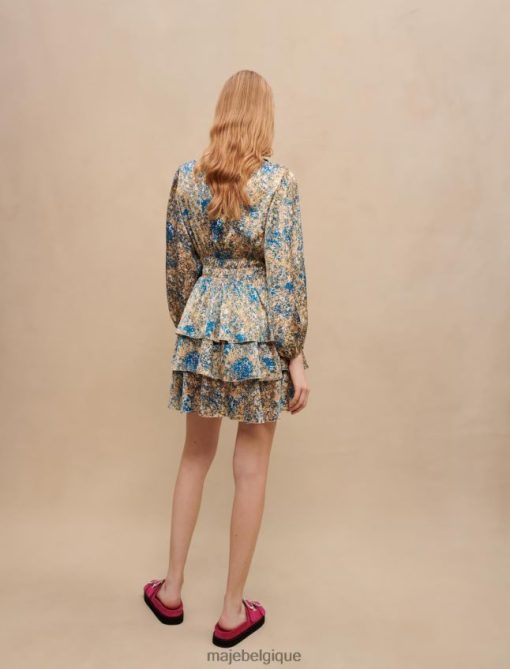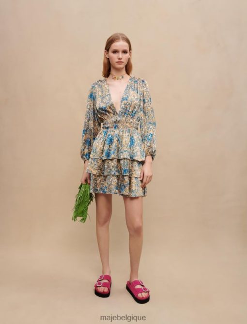 pour la nouvelle saison, maje crée des robes légères et aériennes pour des looks inoubliables. cette mini-robe est ajustée à la taille et présente un décolleté plongeant, des manches longues et un imprimé abstrait.