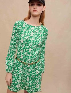 Maje femmes robe courte à manches longues 288PF0179 vêtements imprimé vert onirique