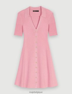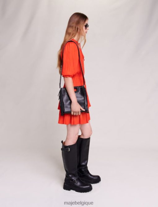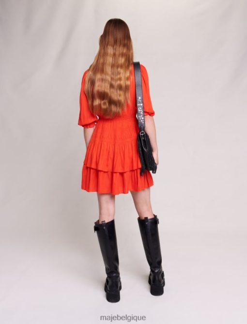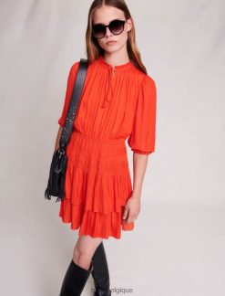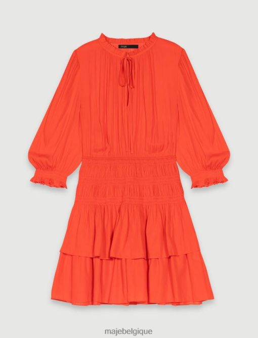 Maje femmes robe courte smockée en satin 288PF025 vêtements coquelicot rouge