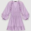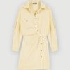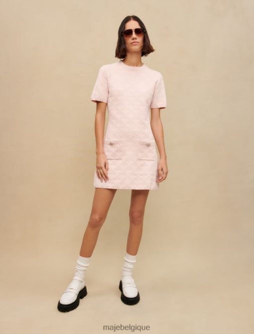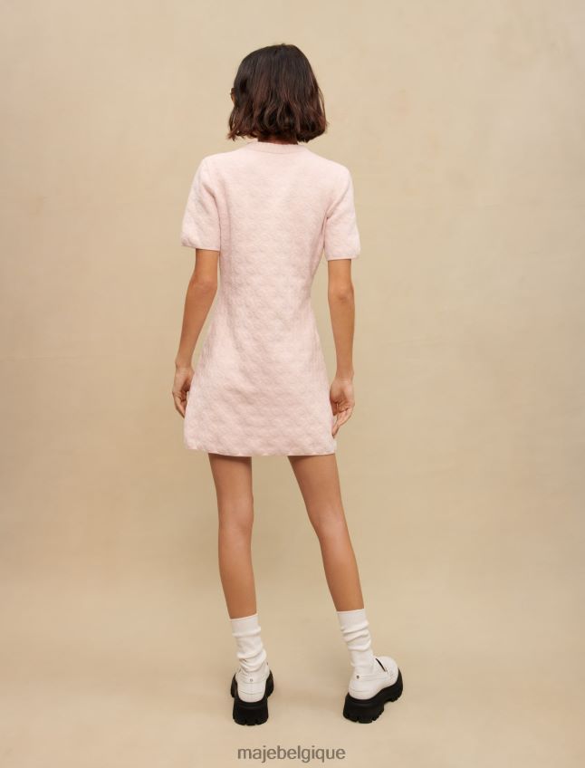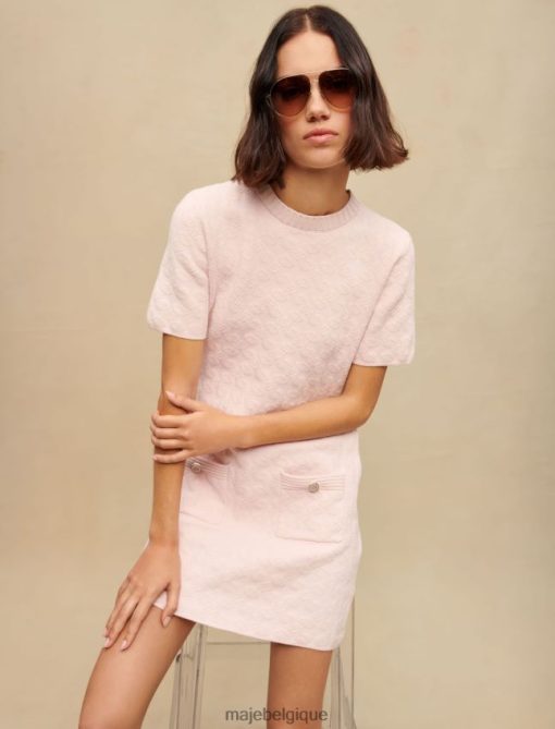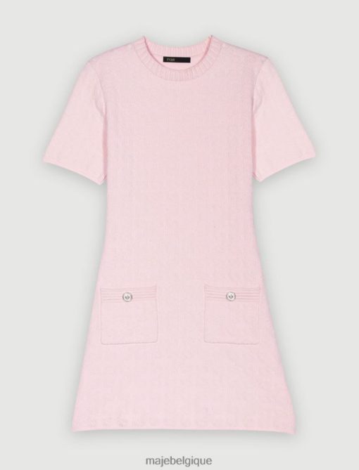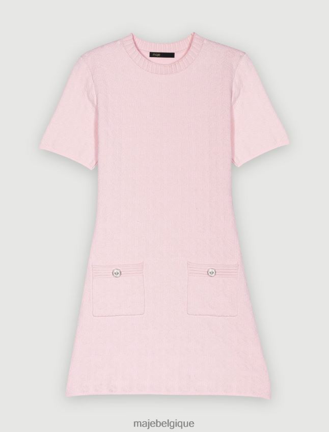 cette robe en maille à col rond regorge de détails. son locknit est bordé d’inserts effet velours, en forme du mini logo trèfle. il possède deux poches avant avec deux boutons siglés Maje. parfait pour une journée au bureau.