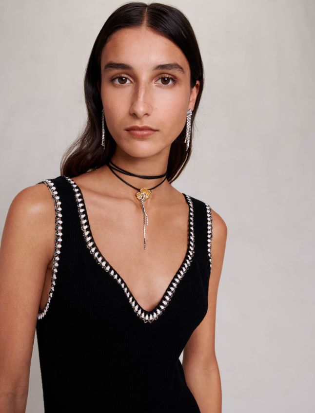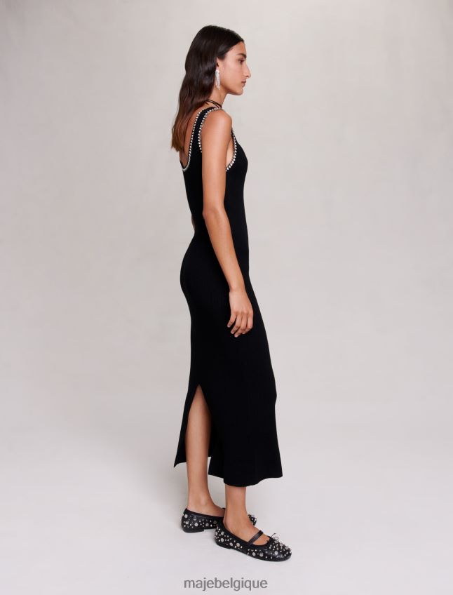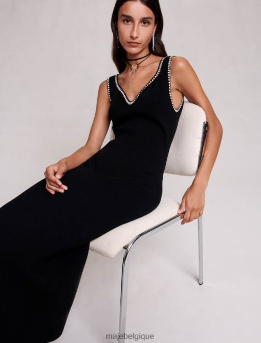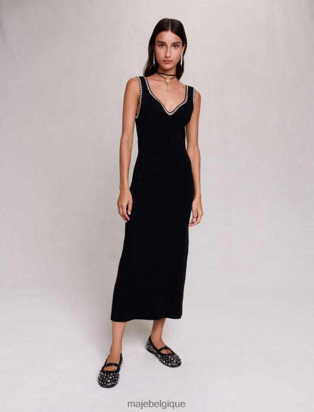 Maje femmes robe longue en tricot 288PF090 vêtements noir
