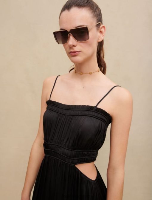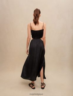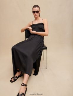 Maje femmes robe longue satinée 288PF0189 vêtements noir