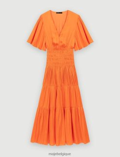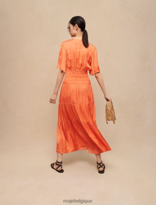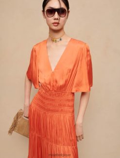 Maje femmes robe longue satinée 288PF0218 vêtements orange
