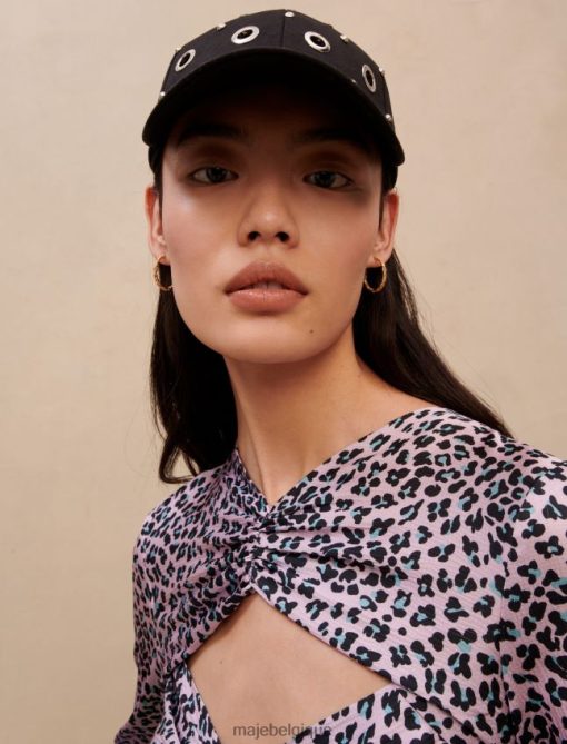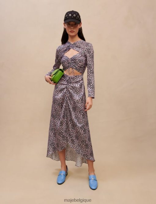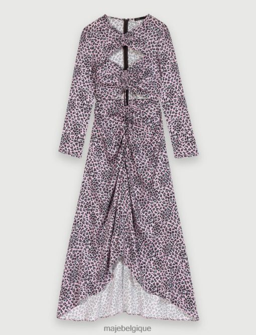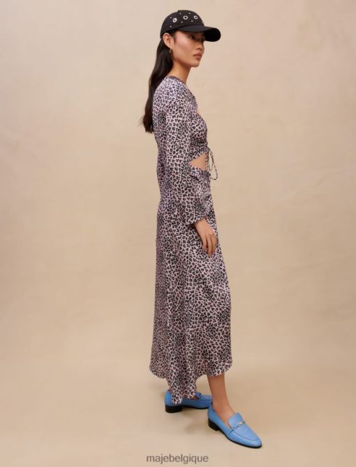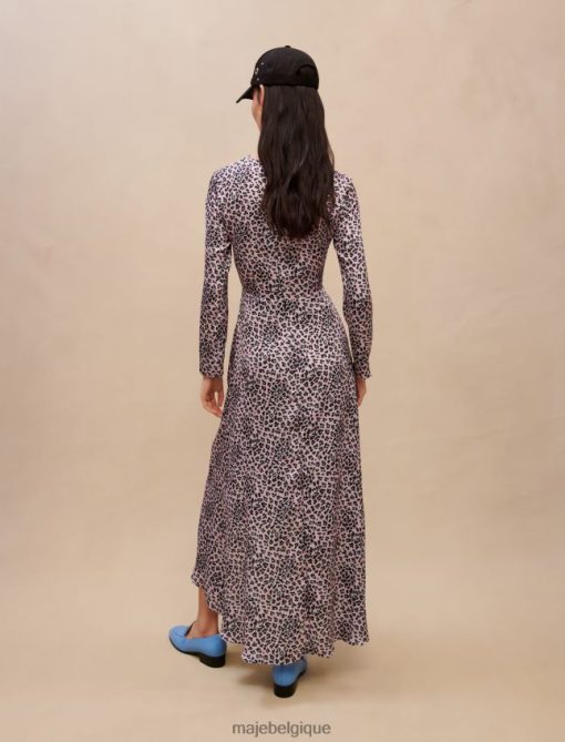 Maje femmes robe longue satinée découpée 288PF0370 vêtements léopard rose clair