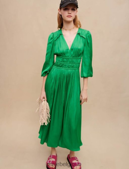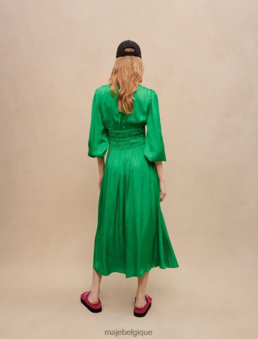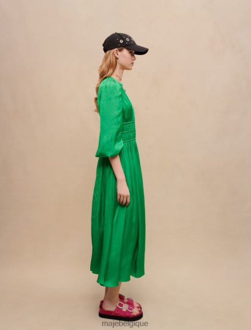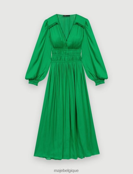 Maje femmes robe midi en satin à volants 288PF0183 vêtements gazon vert