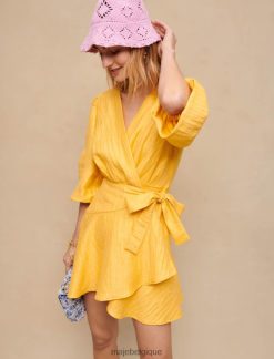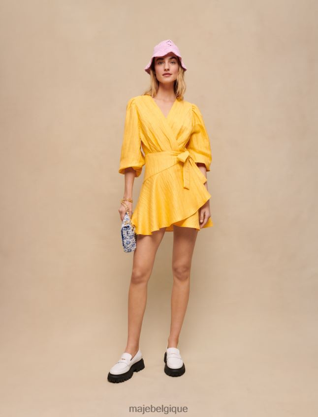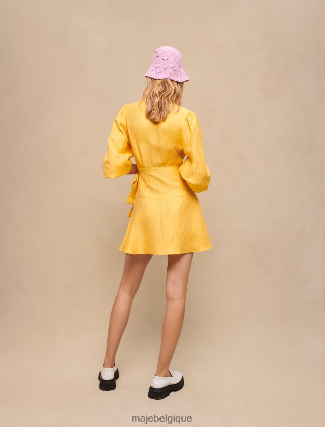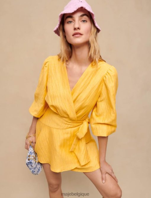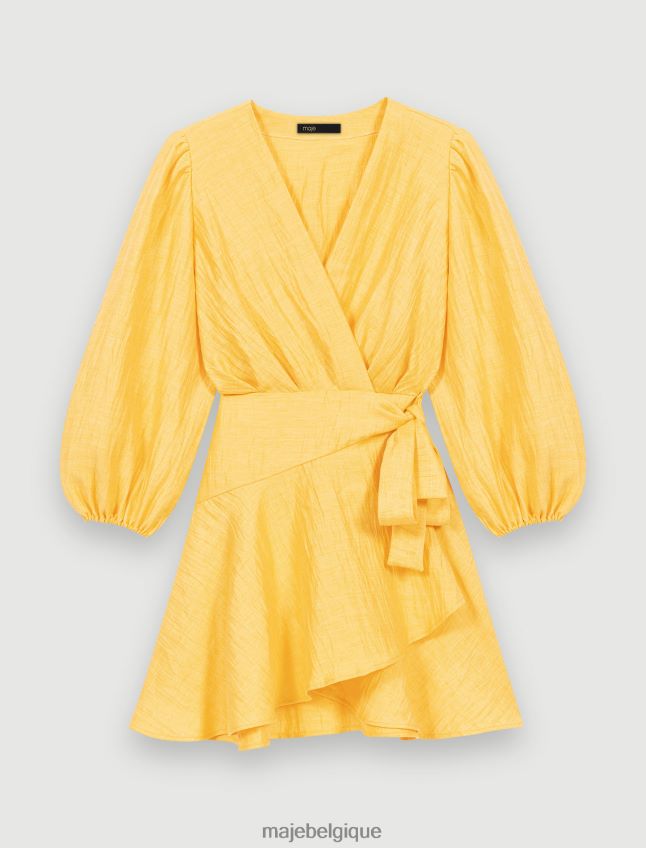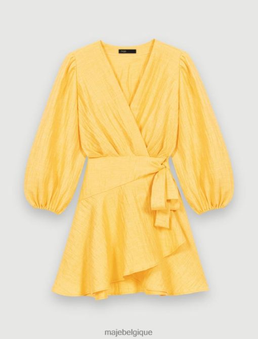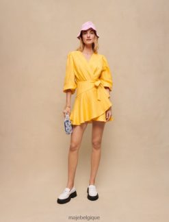 Maje femmes robe portefeuille avec lien 288PF0216 vêtements jaune