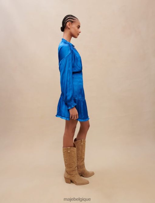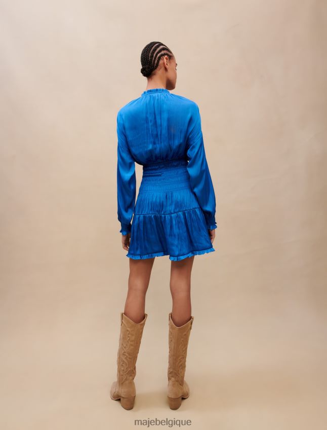 cette robe smockée de la taille aux hanches est extrêmement féminine. son décolleté en V, ses volants sur la jupe et ses manches resserrées aux poignets respirent l’élégance. parfait pour une journée au bureau.