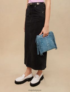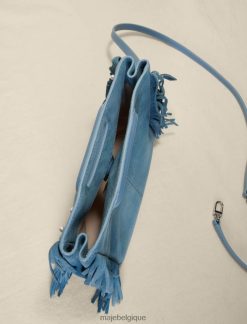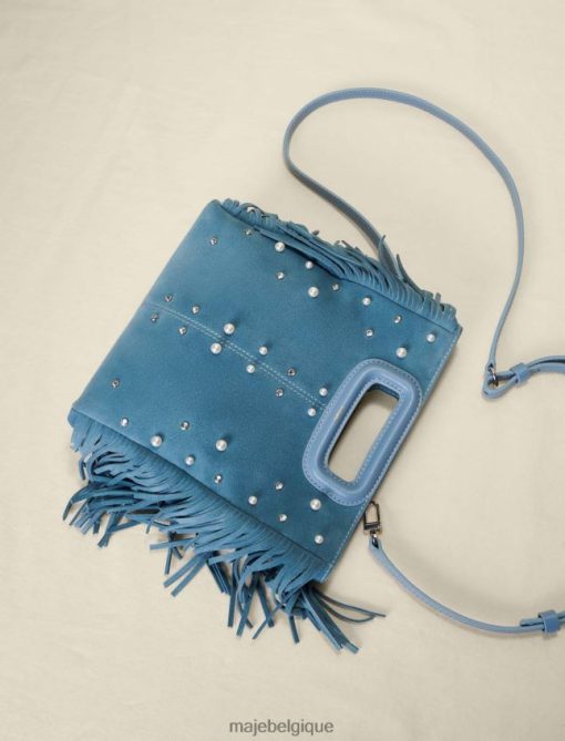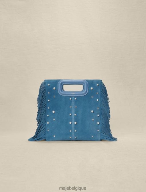 cette saison, le sac m iconique de Maje se décline dans une version en daim avec des clous et des perles. agrémenté de franges sur les côtés et doté d’une anse gainée, il présente un logo doré embossé et une signature gravée sur les mousquetons. en plus de sa pratique fermeture aimantée, il possède une bandoulière réglable et amovible vous permettant de le porter de différentes manières : à la main, en bandoulière ou en bandoulière.